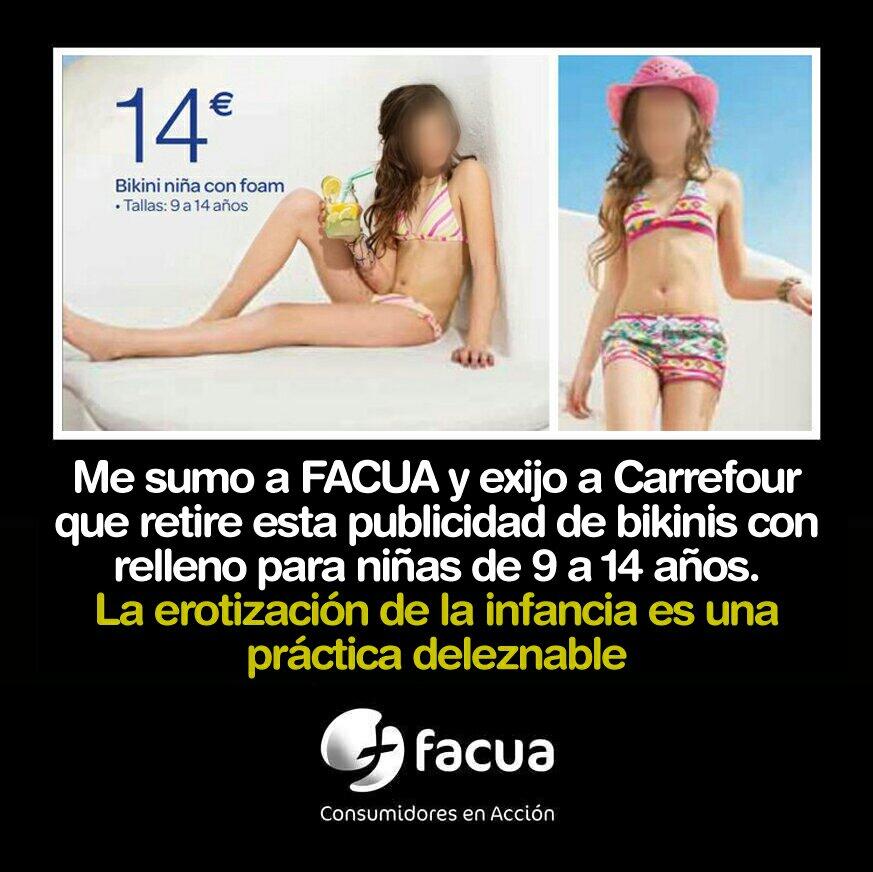 Os dejo esta publicidad incluida en el ultimo catalogo de carrefour y que FACUA, una asociación de consumidores ya ha pedido que se retire. En ella se anuncian sujetadores con relleno para niñas de 9 a 14 años. Intolerable.